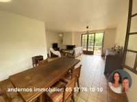 Andernos, dans un environnement calme et arboré, cette maison de plain-pied se compose d'un séjour, cuisine, 3 chambres, salle de bains et wc indépendant. Elle ne demande qu'une remise au gout du jour. En extérieur: jardin arboré, terrasse, garage 20m2 et carport. Le terrain de 880 m2 est accessible par 2 entrées. Nombreuses possibilités: agrandissement, étage, piscine, etc…Honoraires à la charge du vendeur. Classe énergie E, Classe climat E Montant estimé des dépenses annuelles d'énergie pour un usage standard : entre 2584.00 € et 3496.00 € sur les années 2021, 2022 et 2023 (abonnements compris). Les informations sur les risques auxquels ce bien est exposé sont disponibles sur le site Géorisques : georisques.gouv.fr.