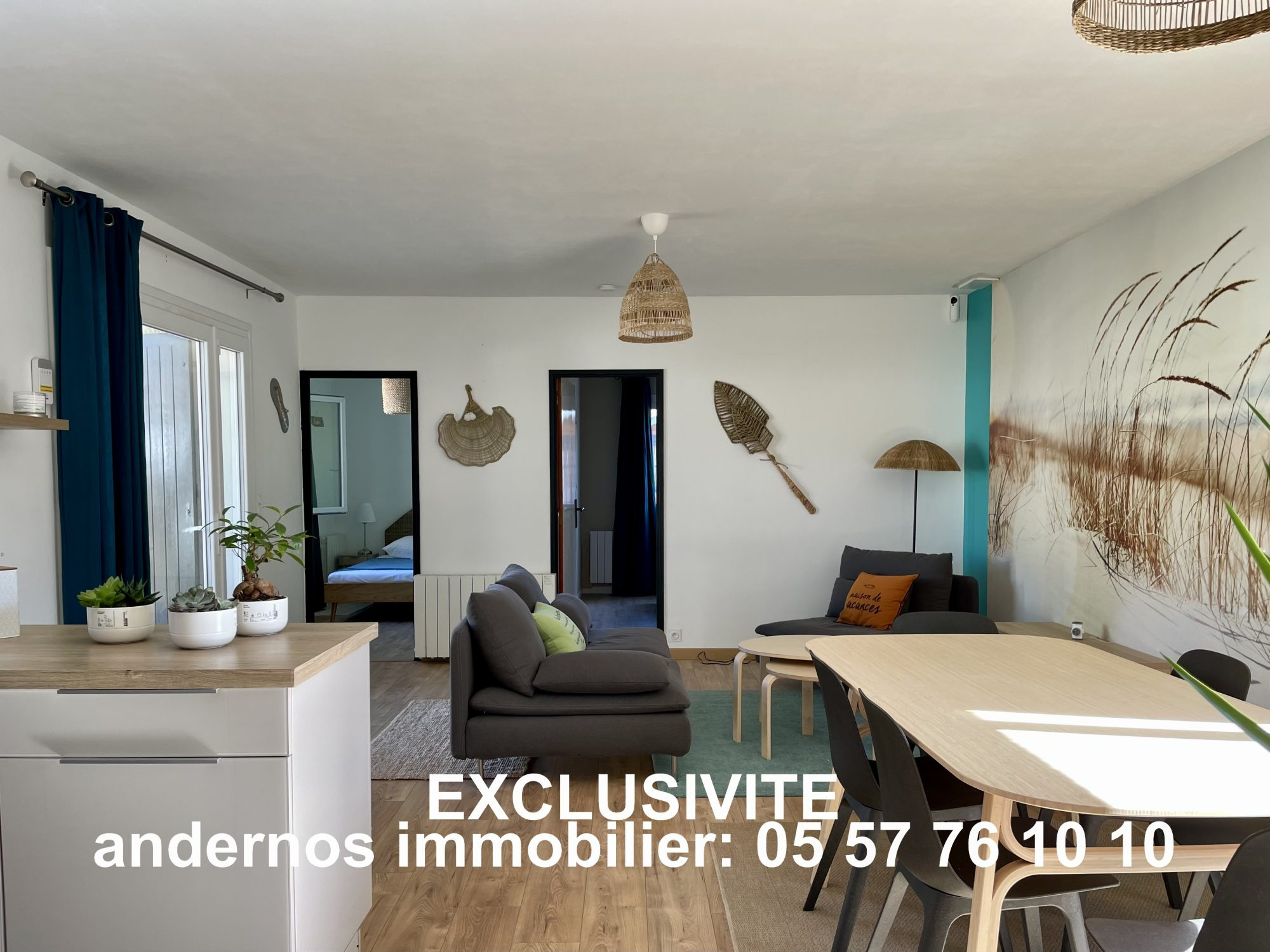 Arès, au calme, maison de plain pied entièrement rénovée. Elle offre 1 séjour avec cuisine aménagée et équipée, 2 chambres, bureau, salle d'eau et wc. Terrain de 350 m² avec cabanon de jardin. Location proposée en bail meublé avec Garantie Loyer impayé (Garant non accepté).Nous consulter.Loyer de base 1039 €/mois. Provision sur charges 20 €/mois, régularisation annuelle. Dépôt de garantie 2 078 €. Classe énergie E, Classe climat B Montant moyen estimé des dépenses annuelles d'énergie pour un usage standard, établi à partir des prix de l'énergie de l'année 2021 : entre 1320.00 et 1820.00 €. Les informations sur les risques auxquels ce bien est exposé sont disponibles sur le site Géorisques : georisques.gouv.fr.