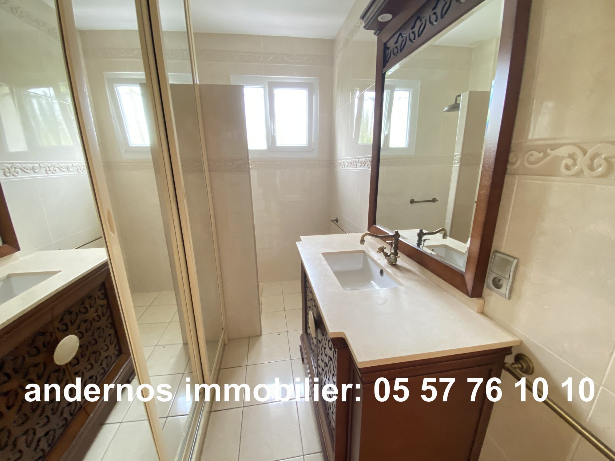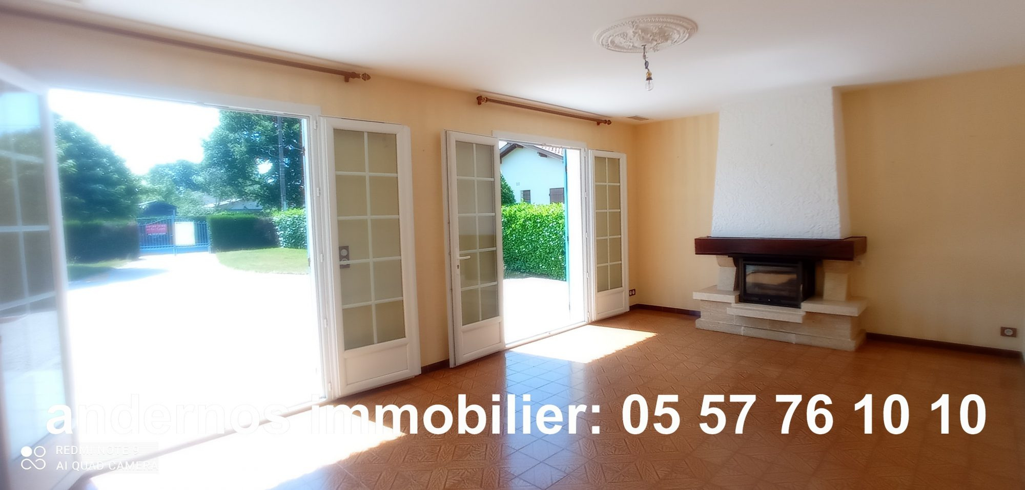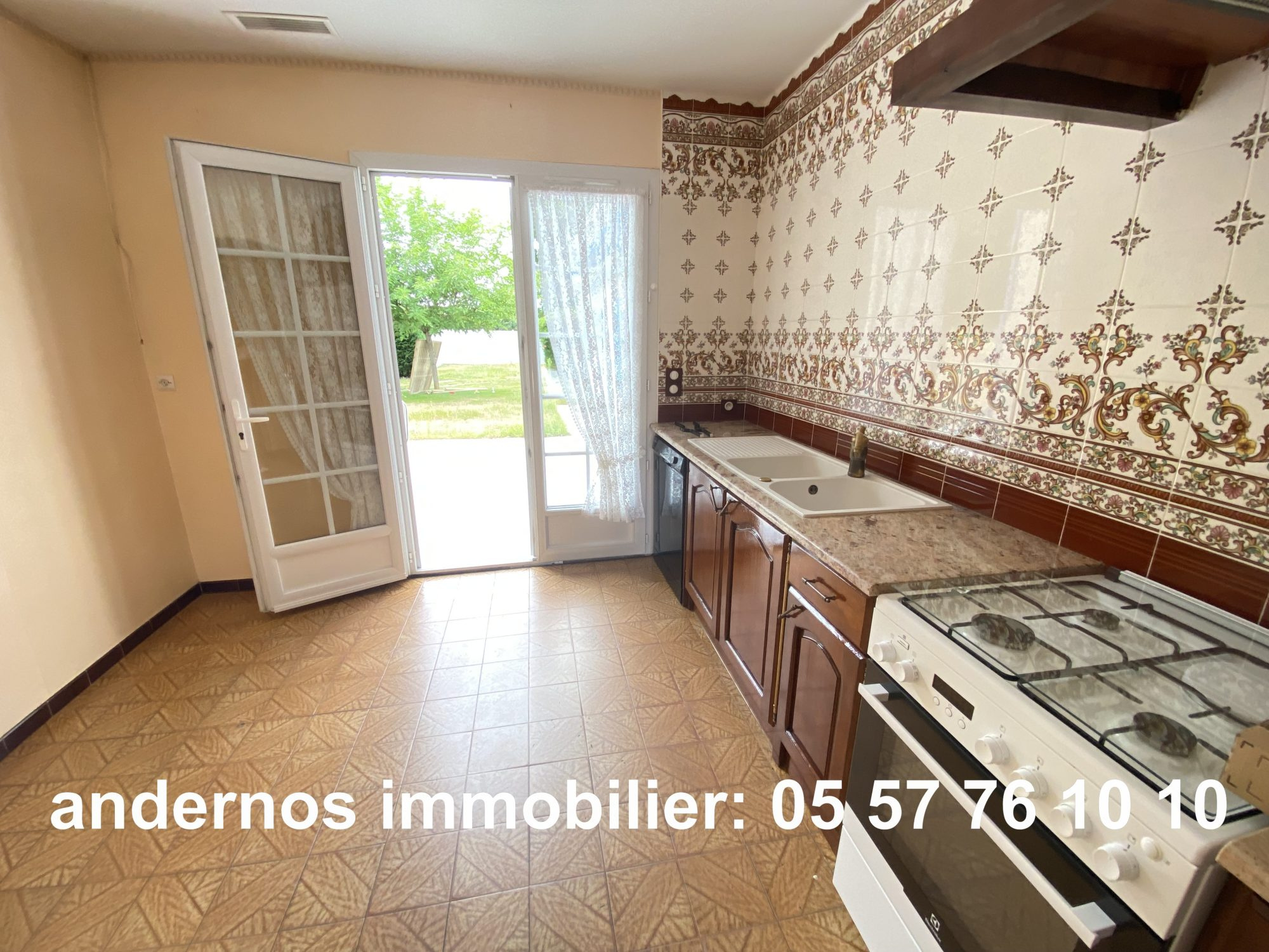 Andernos, maison de plain-pied exposée plein sud, et profitant d'un beau jardin avec vue dégagée. Environnement calme et résidentiel. Elle est actuellement agencée en 2 habitations: La maison principale (env. 70m2), rénovée, se compose d'un séjour avec cheminée, cuisine aménagée, 2 chambres, salle d'eau et WC indépendants. La seconde habitation (T2 bis d'env. 45m2) offre un séjour, cuisine, 1 chambre avec salle d'eau et WC. Il est possible de réunir les 2 habitations, en ouvrant simplement une porte, et bénéficier ainsi des 115m2. La parcelle arborée d'environ 750m2 permet l'implantation d'une belle piscine.Honoraires à la charge du vendeur. Classe énergie D, Classe climat B Montant moyen estimé des dépenses annuelles d'énergie pour un usage standard, établi à partir des prix de l'énergie de l'année 2021 : entre 1720.00 et 2390.00 €. Les informations sur les risques auxquels ce bien est exposé sont disponibles sur le site Géorisques : georisques.gouv.fr.