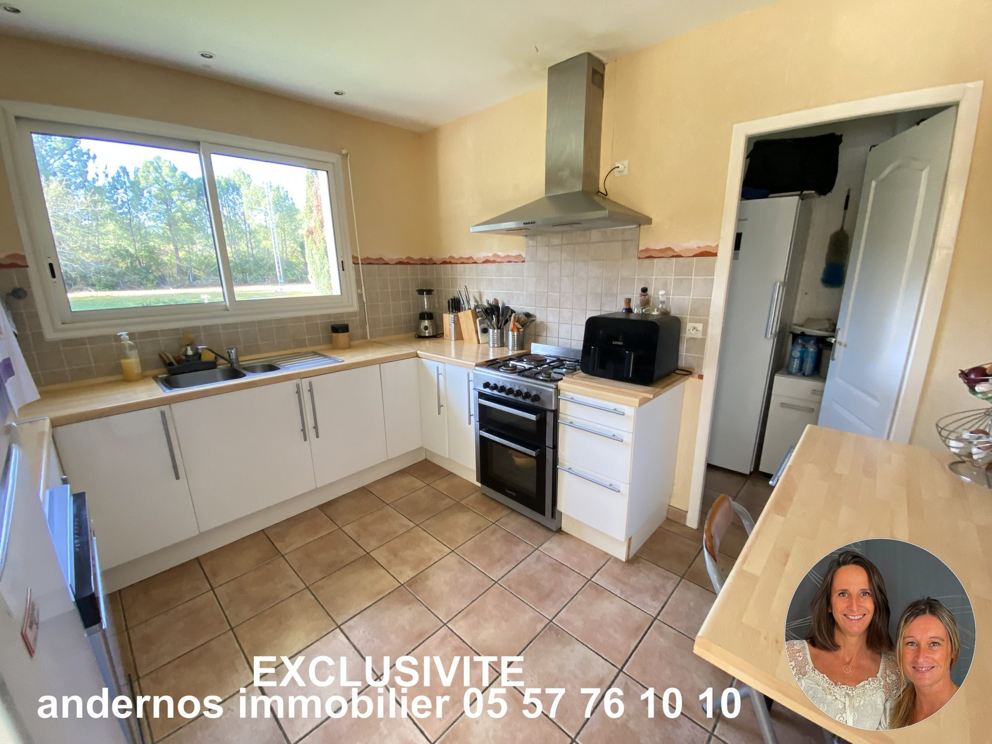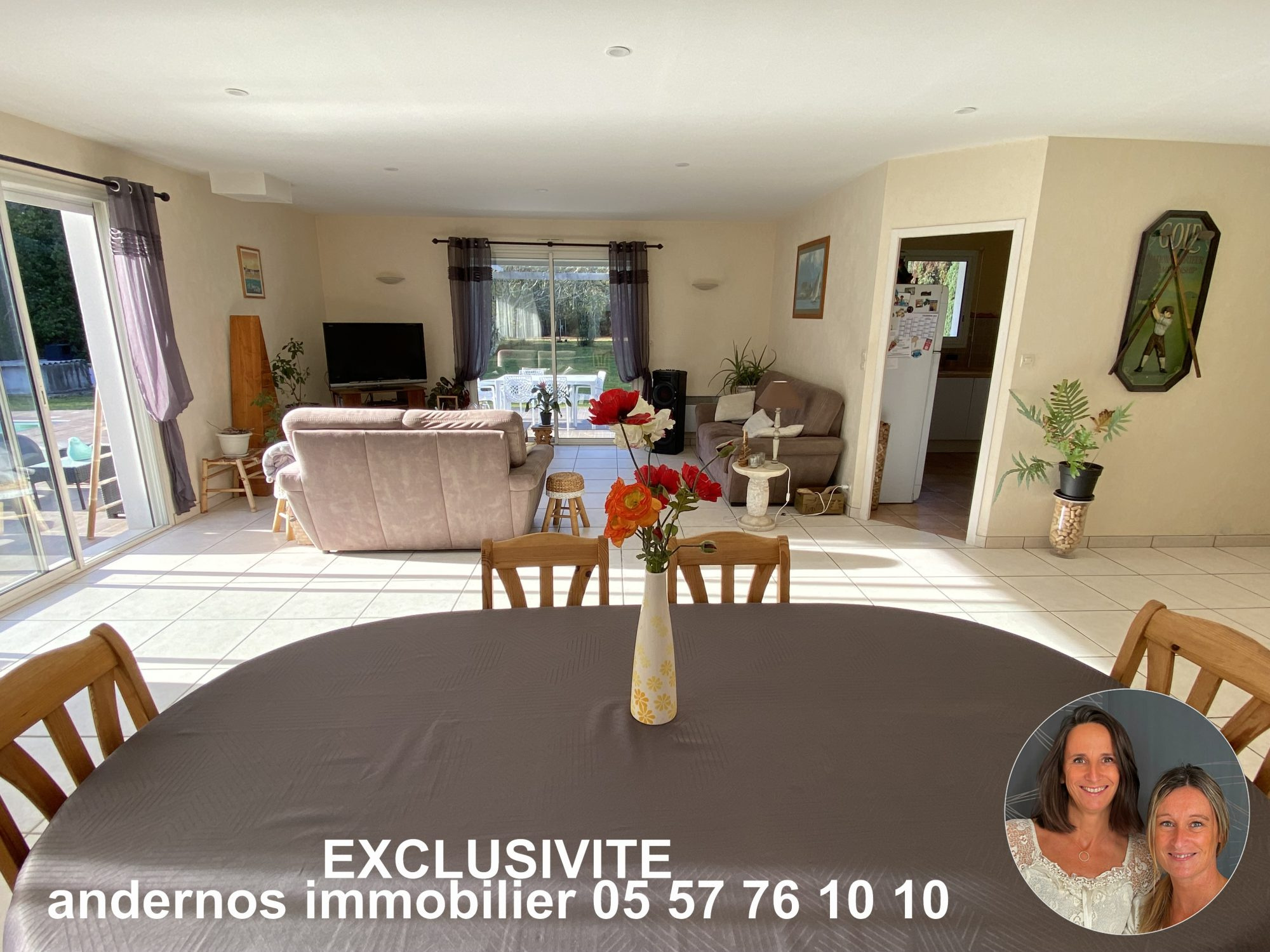 EXCLUSIVITE chez Andernos Immobilier. Maison contemporaine, lumineuse, aux grandes ouvertures. Séjour traversant, cuisine séparée avec cellier, 3 chambres dont 1 avec dressing (ou bureau), grande salle de bains avec douche, wc séparé et garage attenant. Disposant d'un immense parc de 4800 m² dont une partie n'est pas constructible, la piscine prend sa place plein sud avec terrasse. Un bien rare, alliant espace, confort et art de vivre, dans un environnement verdoyant et privilégié à seulement 10 minutes à pied du bassin.Honoraires à la charge du vendeur. Classe énergie D, Classe climat A Montant estimé des dépenses annuelles d'énergie pour un usage standard : entre 1740.00 € et 2390.00 € sur les années 2021, 2022 et 2023 (abonnements compris). Les informations sur les risques auxquels ce bien est exposé sont disponibles sur le site Géorisques : georisques.gouv.fr.