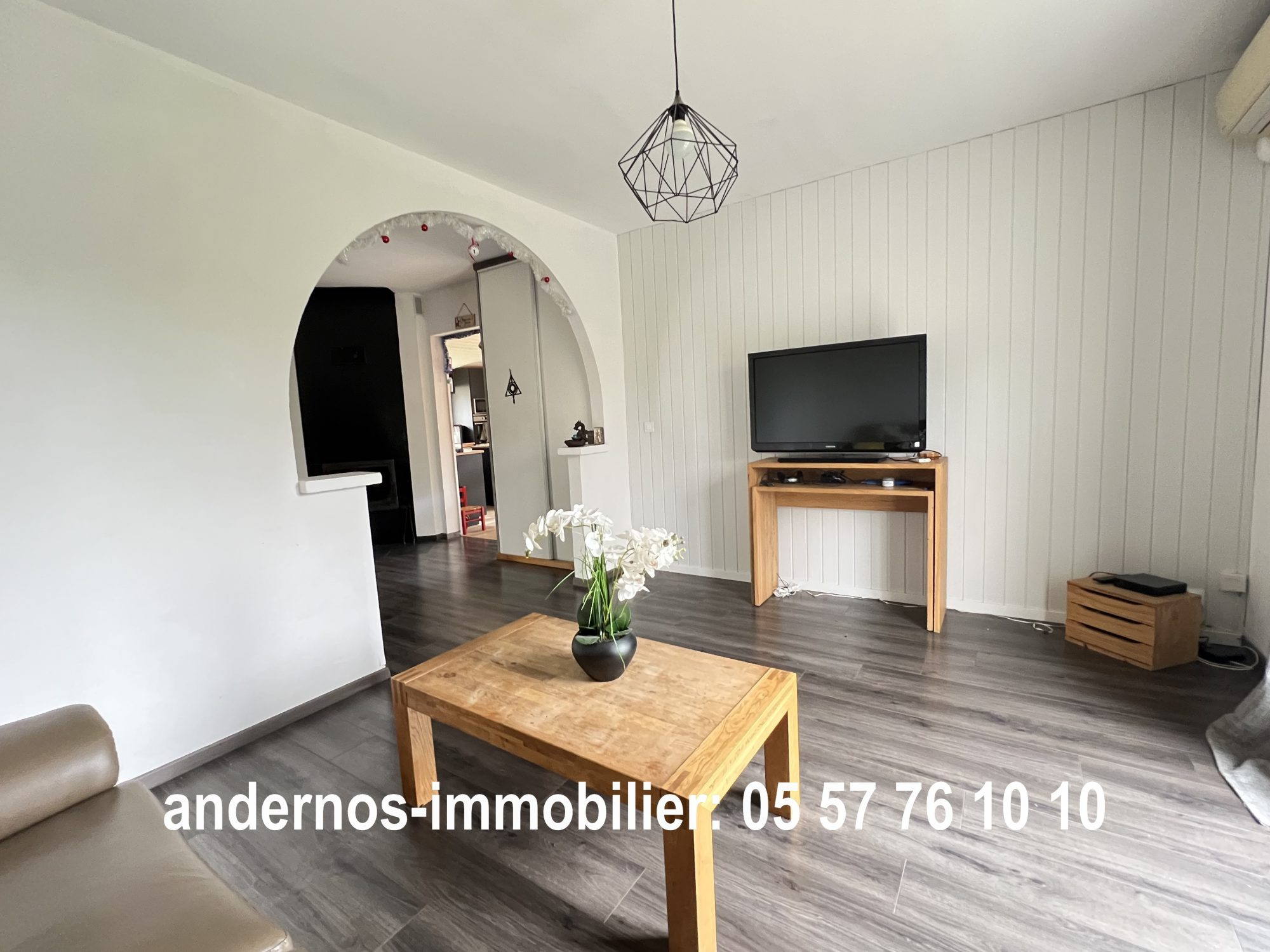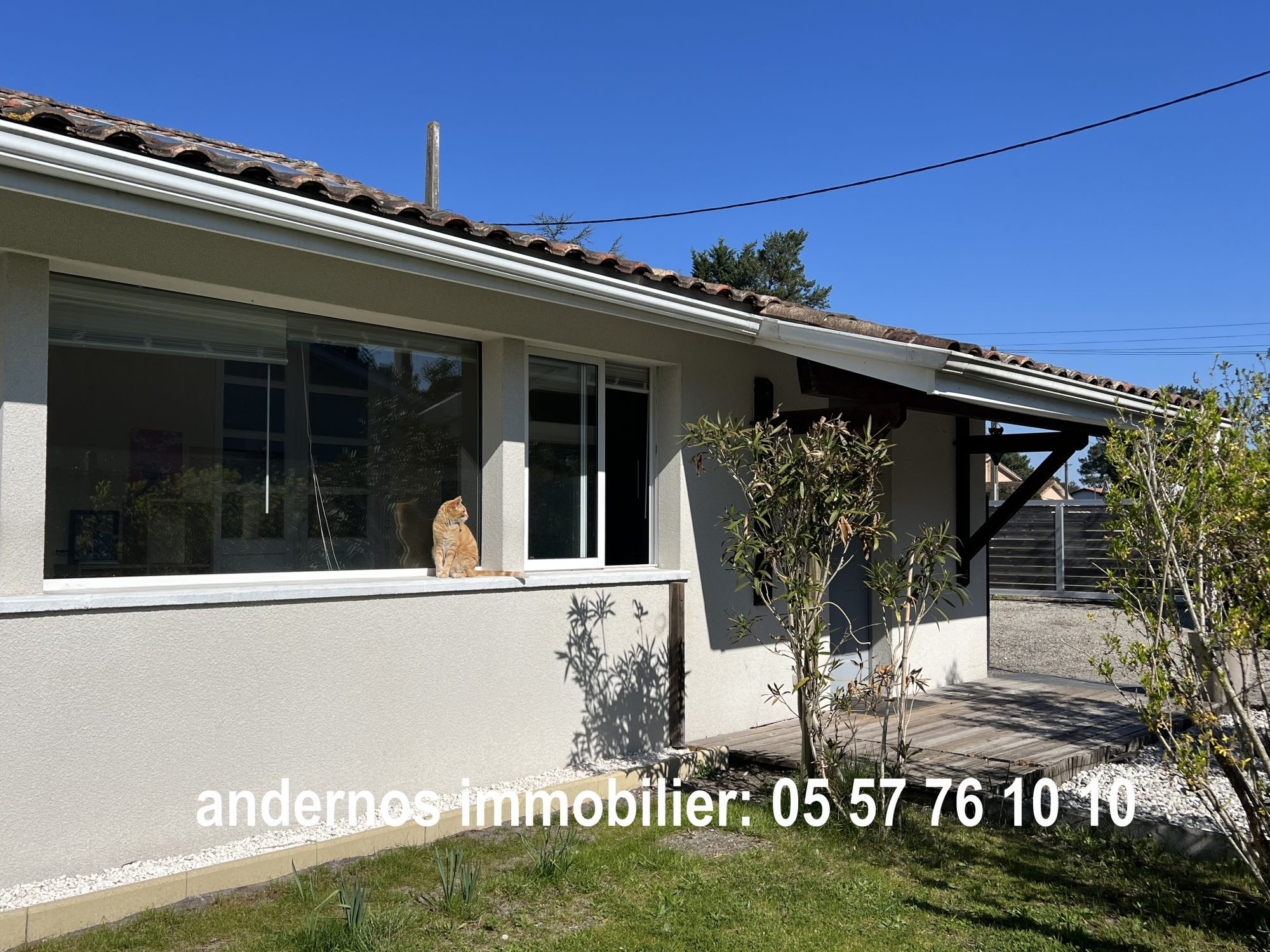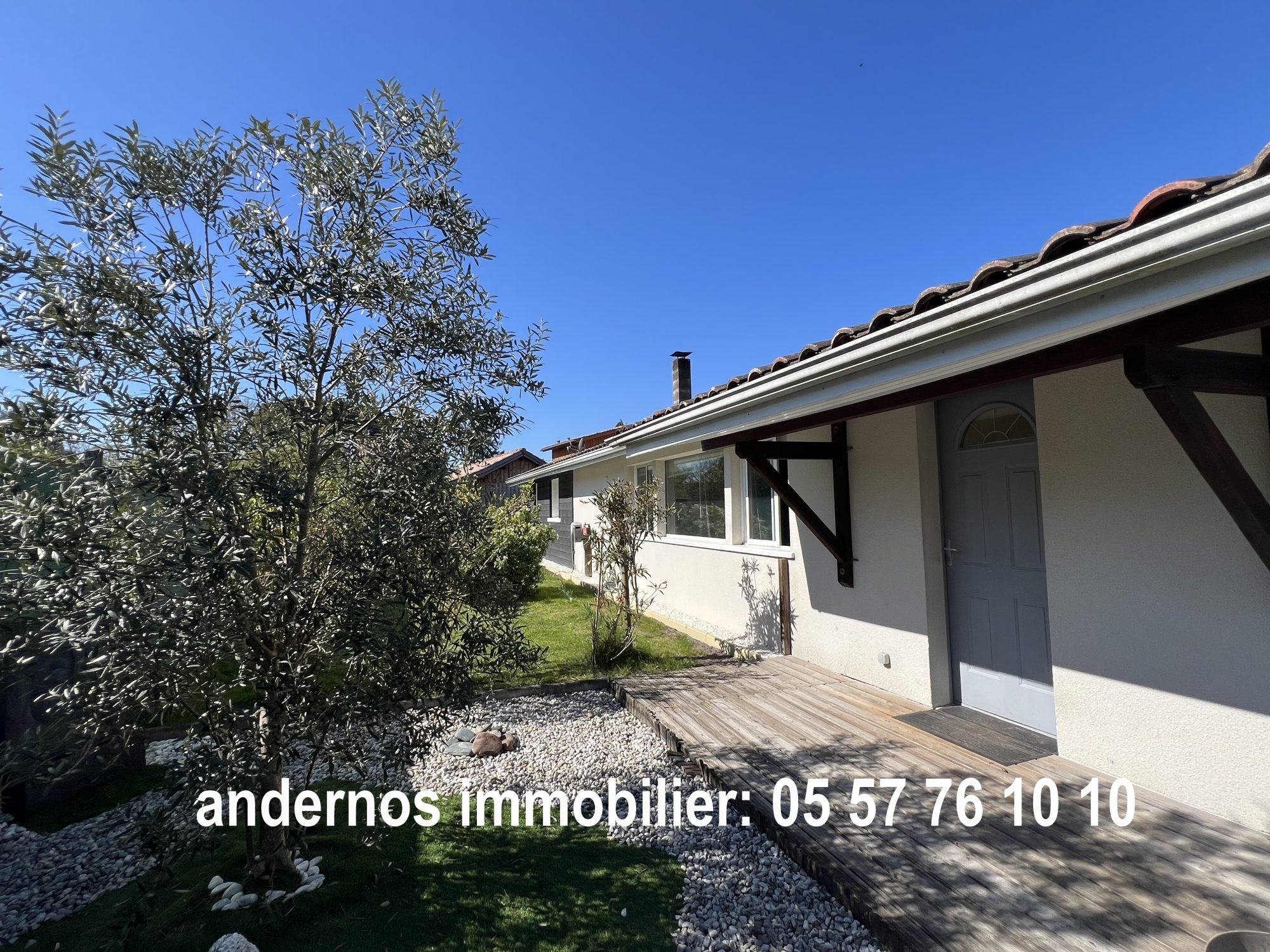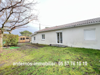 Lanton, maison de plain pied d'environ 140m2: Elle offre une grande entrée avec placard, un double séjour avec insert, grande cuisine aménagée, 3 chambres, bureau, salle d'eau et 2 WC. A mettre au gout du jour. Indépendant à la maison, un T2, récent et en excellent état, pourra accueillir vos amis, ou être loué (ancien loyer: 720€cc/mois). La parcelle de 773m2 comprend 2 entrées sur 2 rues différentes. Panneaux solaires avec revente de l'électricité.Honoraires à la charge du vendeur. Classe énergie C, Classe climat A Montant moyen estimé des dépenses annuelles d'énergie pour un usage standard, établi à partir des prix de l'énergie de l'année 2021 : entre 1150.00 et 1630.00 €. Les informations sur les risques auxquels ce bien est exposé sont disponibles sur le site Géorisques : georisques.gouv.fr.