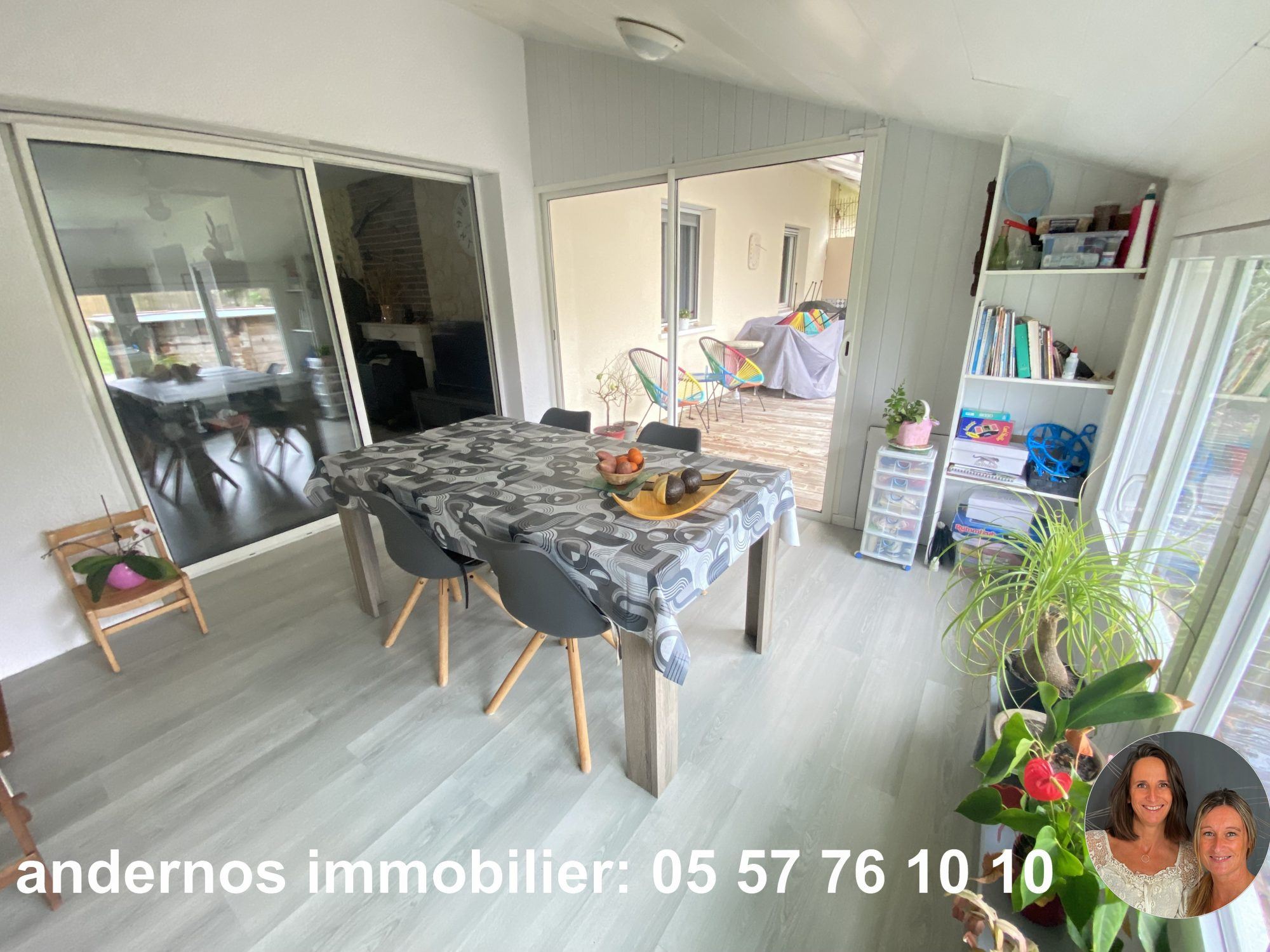 NOUVEAUTE chez ANDERNOS IMMOBILIER , à mi chemin d'Andernos et d'Arès, en bordure de forêt, maison parfaitement entretenue comprenant une entrée, un vaste séjour prolongé d'une véranda, cuisine aménagée et équipée, un cellier, un dégagement qui distribue 3 chambres avec placard chacune , une salle d'eau et wc séparé. Son grand terrain de presque 2000 m² (zone PLU réglementée) dispose d'un grand cabanon de jardin avec atelier, un carport pour 2 véhicules , terrasse couverte, et piscine hors sol chauffée. Honoraires à la charge du vendeur. Classe énergie C, Classe climat A Montant estimé des dépenses annuelles d'énergie pour un usage standard : entre 930.00 € et 1330.00 € sur les années 2021, 2022 et 2023 (abonnements compris). Les informations sur les risques auxquels ce bien est exposé sont disponibles sur le site Géorisques : georisques.gouv.fr.