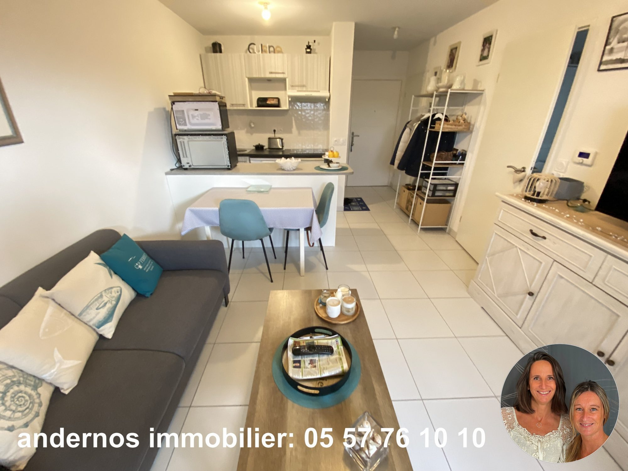 Andernos, joli T2 en parfait état, en ré de chaussée dans une résidence récente et sécurisée. Il se compose d'une entrée avec placard, lumineux séjour donnant sur terrasse abritée, belle chambre de 12 m² avec placard, salle d'eau et wc. Parking privé. Aucun travaux à prévoir. Très bonne exposition. Honoraires à la charge du vendeur. Dans une copropriété de 87 lots. Aucune procédure n'est en cours. Classe énergie C, Classe climat C Montant estimé des dépenses annuelles d'énergie pour un usage standard : entre 475.00 € et 643.00 € sur les années 2021, 2022 et 2023 (abonnements compris). Les informations sur les risques auxquels ce bien est exposé sont disponibles sur le site Géorisques : georisques.gouv.fr.