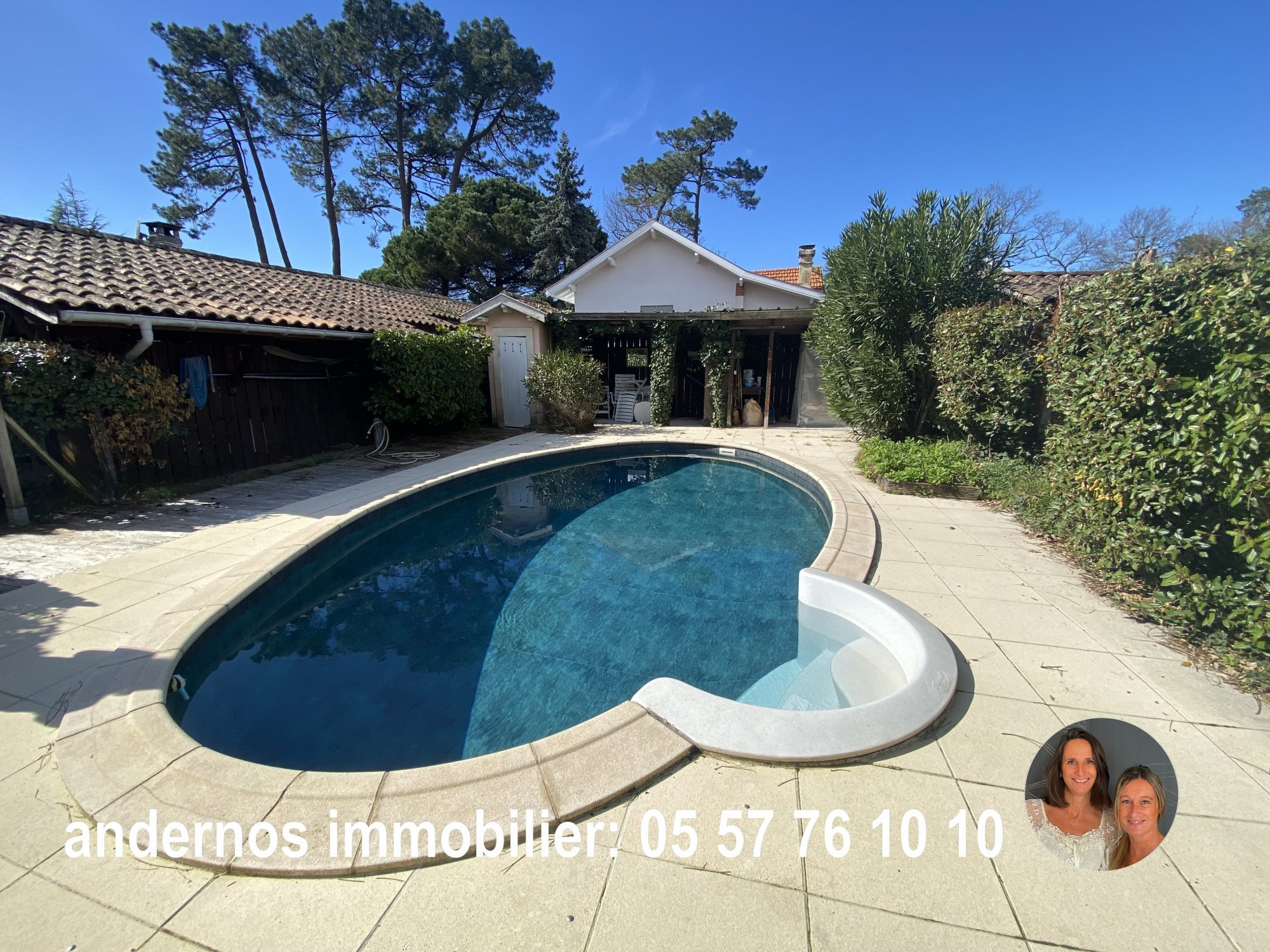 Andernos, situation très recherchée à quelques pas de la plage du Betey, et à proximité à pied du centre ville.Superbe maison de type arcachonnaise des années 1920, nichée au sein d'une grande parcelle arborée de plus de 2000m2,Entièrement de plain pied, elle offre un double séjour baigné de lumière, cuisine ouverte, cellier. Beaucoup de cachet. Coté nuit: 2 chambres, dressing et salle d'eau. 2 chambres supplémentaires se situent dans la dépendance, avec WC et salle d'eau, pour recevoir vos proches. Piscine, terrasse en bois, chais et Carport. Le terrain laisse cours à différents projets: construction, division parcellaire, ou autre... Nous consulter.Honoraires à la charge du vendeur. Classe énergie C, Classe climat C Montant moyen estimé des dépenses annuelles d'énergie pour un usage standard, établi à partir des prix de l'énergie de l'année 2021 : entre 1700.00 et 2350.00 €. Les informations sur les risques auxquels ce bien est exposé sont disponibles sur le site Géorisques : georisques.gouv.fr.