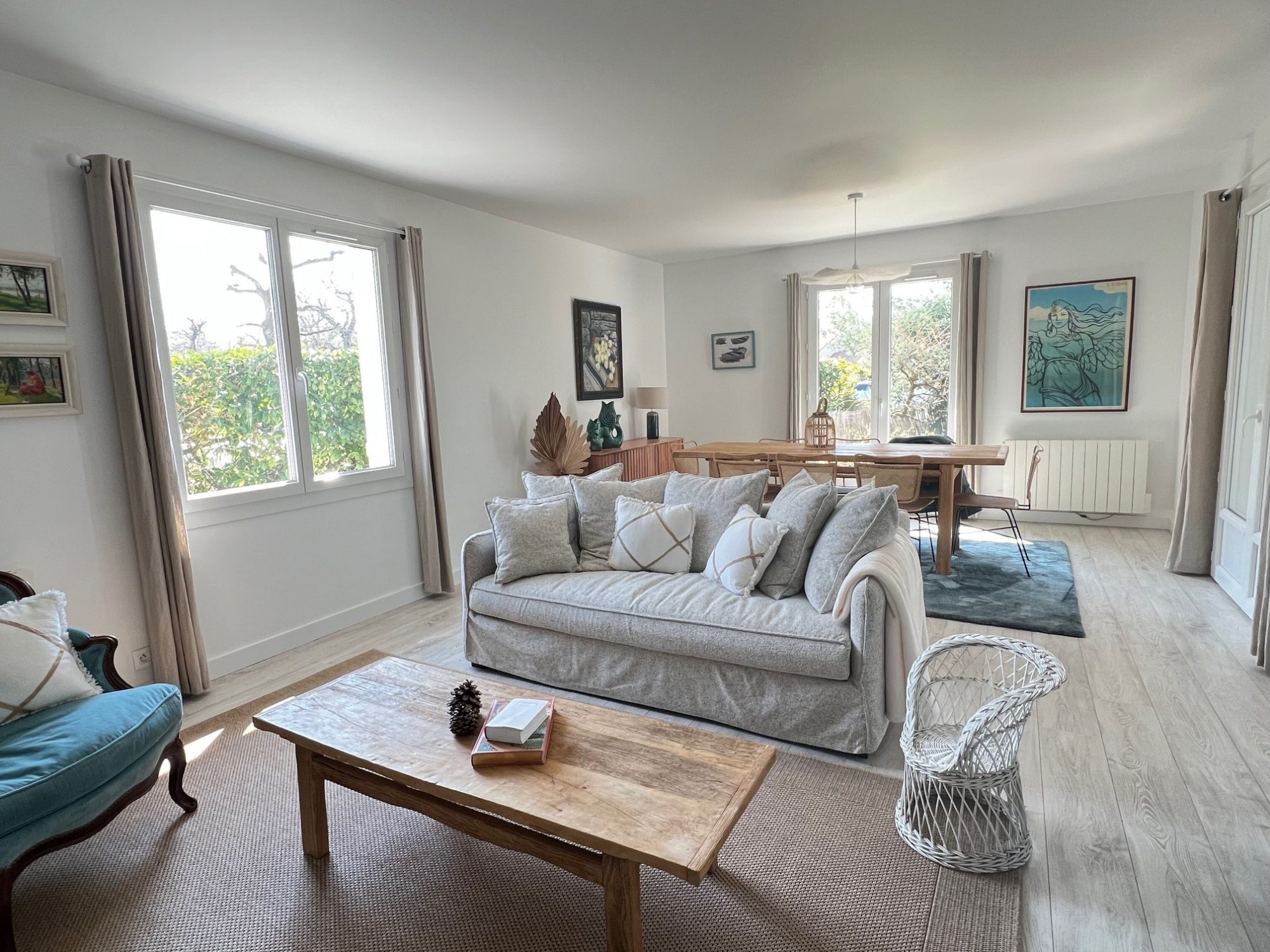Taussat, proche du port des Fontaines, très belle maison familiale de 160m2 environ, au sein d'un grand jardin arboré et préservé. Elle offre 1 entrée, 1 grand et lumineux séjour, cuisine aménagée. Coté nuit: 4 belles chambres dont 2 en rdc, bureau, salon (ou salle de jeux, atelier, etc..), 3 salles d'eau et 4 WC. En extérieur: 2 garages, terrasse couverte. très beau terrain permettant l'implantation d'une piscine.Honoraires à la charge du vendeur. Classe énergie D, Classe climat B Montant moyen estimé des dépenses annuelles d'énergie pour un usage standard, établi à partir des prix de l'énergie de l'année 2023 : entre 2740.00 et 3750.00 €. Les informations sur les risques auxquels ce bien est exposé sont disponibles sur le site Géorisques : georisques.gouv.fr.