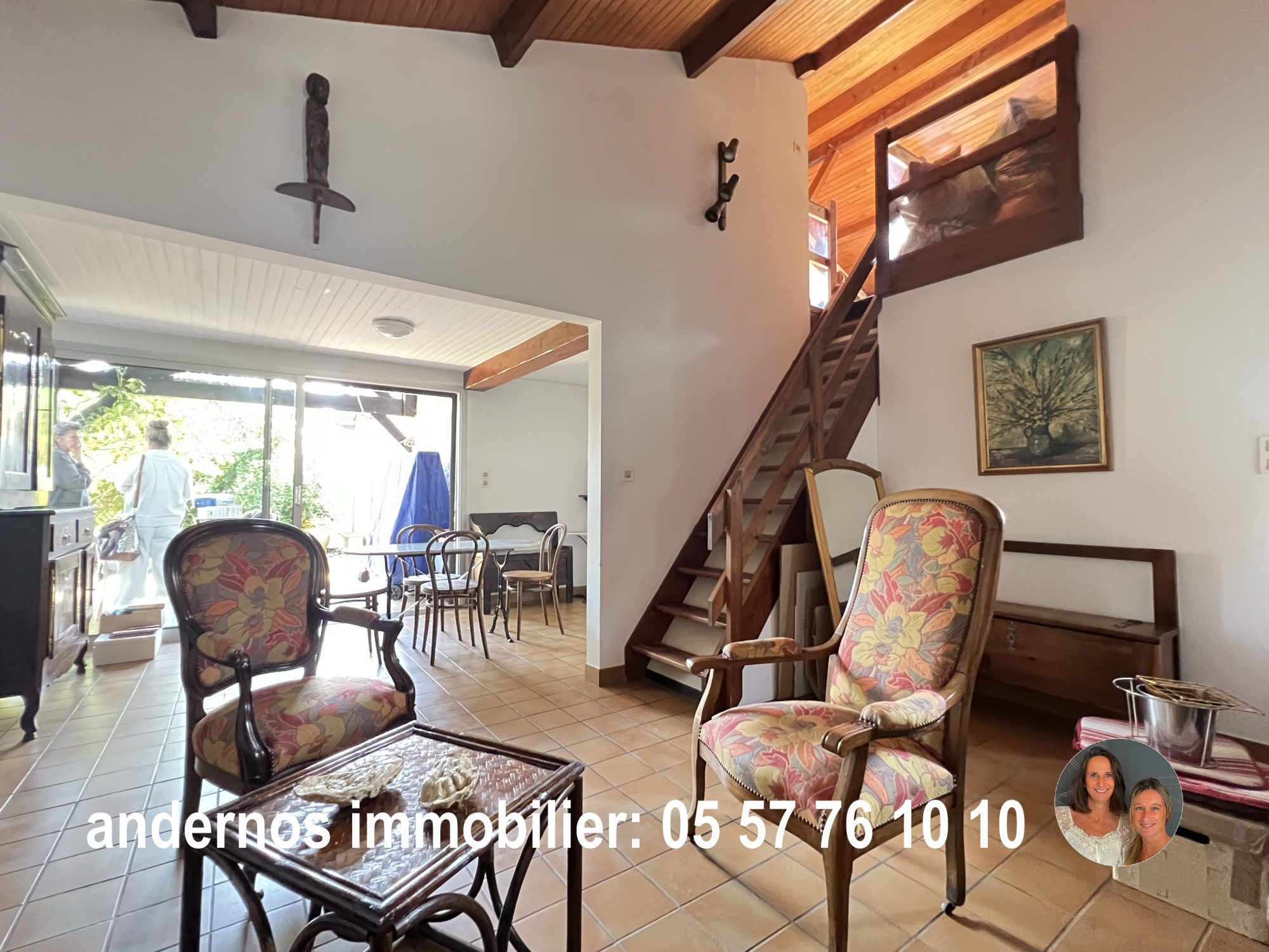 ANDERNOS, plein centre et coté bassin: idéalement située pour tout faire à pied. Maison d'environ 106m2, offrant un double séjour avec insert, cuisine, 3 chambres et mezzanine (pos. 4eme ch.). Beaux volumes, avec hauteur sous plafond. En extérieur: terrasse couverte, garage et jardin de ville. Maison très saine. Prévoir rafraichissement. Emplacement très recherché, à 2 pas de la plage et des commerces.Honoraires à la charge du vendeur. Classe énergie D, Classe climat B Montant moyen estimé des dépenses annuelles d'énergie pour un usage standard, établi à partir des prix de l'énergie de l'année 2023 : entre 1940.00 et 2690.00 €. Les informations sur les risques auxquels ce bien est exposé sont disponibles sur le site Géorisques : georisques.gouv.fr.